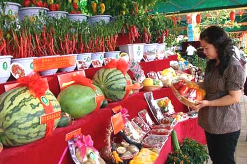 精心布置的展廳內(nèi)集中了230多家參展商的無公害和綠色有機農(nóng)產(chǎn)品展臺,本地一些現(xiàn)代農(nóng)莊和特色蔬食館搭建的展臺前,工作人員帶來的成品素菜、菌類和草雞蛋很快就被“搶”光了。農(nóng)博園內(nèi)按照有機食品生產(chǎn)要求種植的小包裝觀賞蔬菜特別搶手,市民不僅可以現(xiàn)場直接購買紫甘藍、絲瓜等蔬菜,還可到附近的基地去實地考察,感受現(xiàn)代化種植區(qū)的氛圍。從市區(qū)坐班車前來的不少“馬大嫂”們,圍著無公害大米、小巧的袖珍南瓜等特色農(nóng)產(chǎn)品詢問價格和生產(chǎn)細節(jié),展品集中展示不到一小時,很快被賣斷了貨。