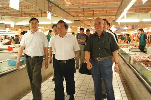 6月4日上午,無錫市政協主席貢培興率隊考察朝陽農貿市場。朝陽集團張海良董事長、楊興德總經理和王愛群副總經理陪同實地參觀了朝陽農貿市場,并向貢主席及其一行介紹了朝陽農貿市場的整體布局、經營情況、管理情況以及涉及民生的農產品農藥殘留檢測等情況。特別是朝陽農貿市場嚴格把好放心食品的關卡和通過嚴格管理,切實落實“嚴管低進”實惠廣大消費群眾的做法,受到了領導們的贊可。