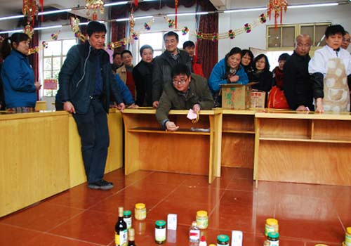 三樓的綜合游藝處依舊安排了許多喜聞樂見的小游戲,動動腦筋猜燈謎,蒙上眼睛點羊尾,轉個身來敲個鑼,巧手一舉投個籃,支支飛鏢射氣球,一圈在手套模模……噼噼啪啪響聲陣陣,歡聲笑語好不熱鬧。活動的高潮出現在卡拉OK現場,伴隨著一首首動聽的歌曲,一輪輪的抽獎環節報出一個個幸運的中獎號碼,給新春羊年帶來了一年的好運氣。