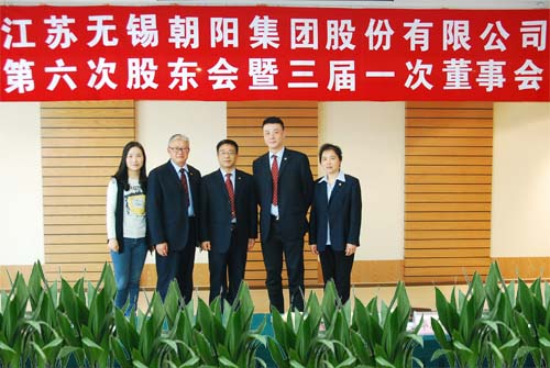 江蘇無錫朝陽集團股份有限公司第六次股東大會暨三屆一次董事會、監事會會議于2015年5月5日在無錫市太湖工人療養院召開。