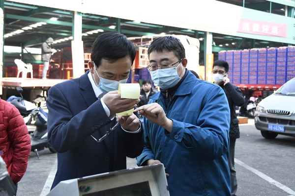 來訪領導先后來到朝陽陳列館、信息中心、檢測中心、結算中心、蔬菜、水果兩大市場、冷庫、北二庫和糧油市場,全面了解了大市場節前各類農產品的供應及儲備情況,對安全工作規范的落實進行了檢查。來訪領導聽取了市場在加強貨源組織、落實基地、市場、超市三級儲備等方面的具體做法,并圍繞食品安全、疫情防控,對市場通過信息化溯源體系實現“人、車、物”全程可追溯的電子化閉環管理表示認可。同時要求市場牢固樹立安全第一的思想,確保市場的安全運行和節日供應,讓市民群眾過一個歡樂祥和平安的春節。
