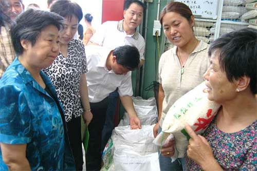 8月25日11時(shí),江蘇省委副書(shū)記張連珍帶領(lǐng)省有關(guān)單位負(fù)責(zé)同志一行30余人,在江蘇省委常委、無(wú)錫市委書(shū)記楊衛(wèi)澤、副市長(zhǎng)吳建選的陪同下,視察了朝陽(yáng)農(nóng)產(chǎn)品大市場(chǎng)的組成部分,蔬菜市場(chǎng)、水果市場(chǎng)和朝陽(yáng)糧油市場(chǎng)。聽(tīng)取了集團(tuán)張海良董事長(zhǎng)和總經(jīng)理?xiàng)钆d德,關(guān)于無(wú)錫朝陽(yáng)農(nóng)產(chǎn)品大市場(chǎng)發(fā)揮“基地+市場(chǎng)+連鎖超市+安全放心,一體兩翼三贏”朝陽(yáng)模式在推動(dòng)農(nóng)業(yè)產(chǎn)業(yè)化中的作用和服務(wù)“三農(nóng)”,豐滿菜籃子供應(yīng),實(shí)現(xiàn)農(nóng)民致富、市民得益、企業(yè)發(fā)展,社會(huì)和諧,使朝陽(yáng)農(nóng)產(chǎn)品大市場(chǎng)真正成為“農(nóng)民致富的市場(chǎng)、市民放心的廚房”的具體做法和有關(guān)朝陽(yáng)農(nóng)產(chǎn)品大市場(chǎng)后續(xù)發(fā)展的設(shè)想,得到了省市領(lǐng)導(dǎo)的充分肯定。省市領(lǐng)導(dǎo)還興致勃勃地觀看了朝陽(yáng)農(nóng)產(chǎn)品大市場(chǎng)的規(guī)劃發(fā)展模型,在朝陽(yáng)糧油市場(chǎng)觀看了“網(wǎng)上糧行”的交易實(shí)況。