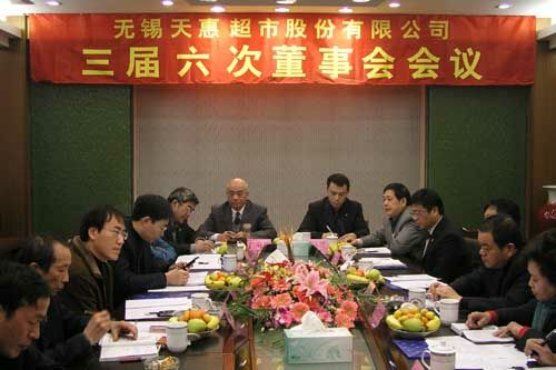 2007年12月22日,無(wú)錫天惠超市股份有限公司三屆六次董事會(huì)會(huì)議在無(wú)錫舉行。會(huì)議審議并通過(guò)如下決議: