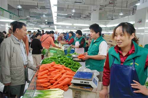 一大早,來自全市四面八方的市民云集這里,一樓蔬菜區(qū)人頭攢動(dòng),嫩綠的葉菜和鮮紅的果菜賞心悅目。跨上自動(dòng)扶梯,只見二樓肉類副食品區(qū)布局整齊,一排排嶄新的計(jì)價(jià)電子秤輕快地吐出銷售票據(jù),從此,消費(fèi)者在農(nóng)貿(mào)市場(chǎng)購物也可以得到銷售憑證了。