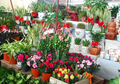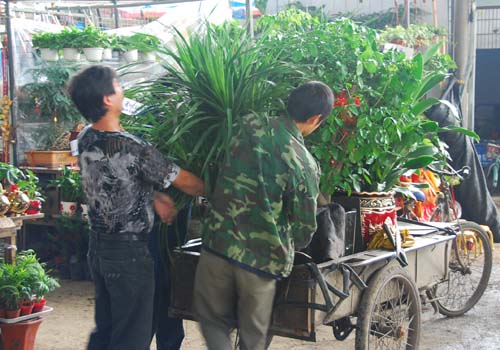 剛剛遷入槐古路朝陽花卉區經營的原無錫市南禪寺花卉市場,節日前夕一派喜氣洋洋。雖然是臨時過渡性經營位,但個個整齊劃一,各種盆花爭奇斗艷、綠意盎然。