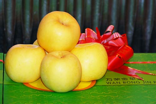 這就是那個引起紛爭的金蘋果嗎?金黃的色澤、細膩的肌膚、淡淡的甜香--但這不是海倫娜,這是山西省萬榮縣栽培的金蘋果。