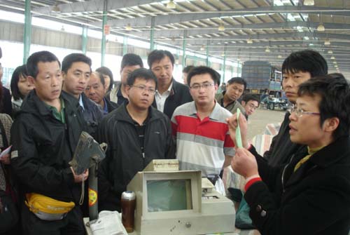 無錫朝陽股份公司副總經理樊麗萍為北京客人介紹了大市場的經營、管理和發展情況。