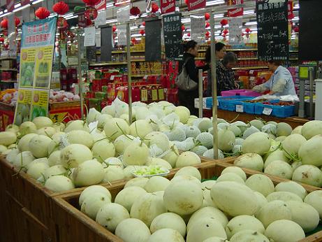 展銷水果品種繁多:有黃土塘麒麟瓜,種植于蘇南著名西瓜之鄉—東湖塘鎮黃土塘村,其西瓜皮薄、瓤酥、甜性足;有種植于蘇北的東臺特小鳳西瓜,渣少,皮薄,入口即化;有種植于江陰祝塘鎮無公害區的游圣西瓜,清甜密甘,爽口解暑;有上海郊外金山區的珠峰玉瓜,果皮淡白色,果面光滑,果肉淡綠,肉厚細嫩,是甜瓜中的上品;有上海南匯區的東方密甜瓜,瓜肉松脆帶有芳香,甜而不膩,引得許多顧客紛紛前來試嘗、選購。