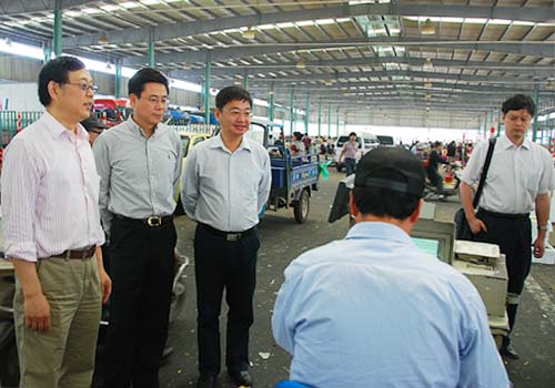 6月1日,江蘇省商務廳副廳長陳濤一行,在無錫市商務局副局長糜君初的陪同下,來到無錫朝陽集團農產品大市場考察。
