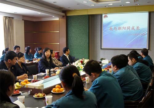 朝陽集團常務副總經(jīng)理張君君主持座談會。她向與會的中青年骨干們介紹了朝陽集團風雨滄桑的歷史變遷,以及朝陽集團不斷發(fā)展壯大的輝煌歷程。與會代表們無不為之動容,為之歡欣鼓舞。圍繞企業(yè)的發(fā)展,個人的成長,以及對未來的展望,代表們?nèi)呵榧ぐ海瑫乘浴>实难葜v,誠摯的感言,那是代表們發(fā)自肺腑的心聲,更是對朝陽事業(yè)的滿腔熱愛。整個座談會在輕松、和諧的氛圍中展開。朝陽集團黨委書記錢韌、總經(jīng)理楊興德也專程到會,聆聽了代表們的發(fā)言。錢書記還發(fā)表了熱情洋溢的講話,對青年人寄予了厚望。