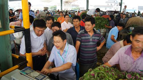 隨后,考察團一行來到蔬果大棚了解現場交易及一體秤的使用情況。