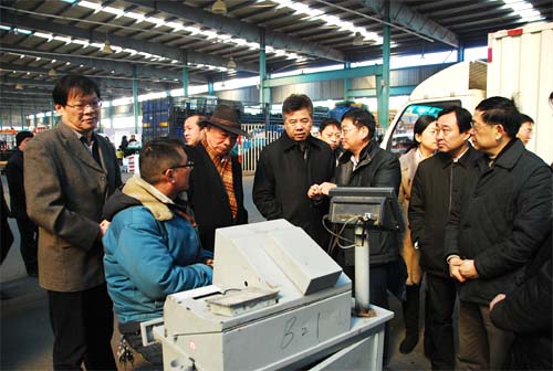 元月21日上午,無錫市副市長嵇克儉一行來到朝陽農產品大市場視察春節供應工作。朝陽集團董事長張海良、總經理楊興德等向市領導詳細介紹了朝陽農產品大市場總體規劃和布局,并陪同市領導來到蔬菜備案中心和市場信息中心、結算中心、檢測中心及交易現場視察工作。