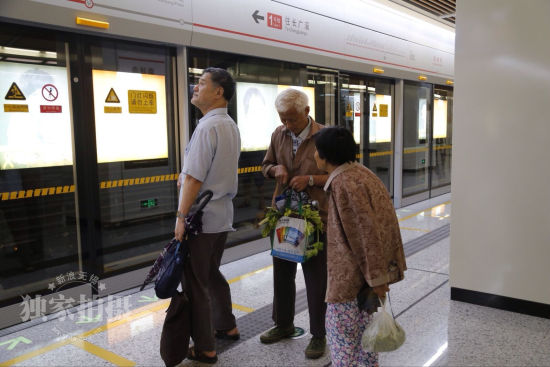 1號線一開通,不少市民就趕緊來體驗地鐵。在南禪寺站,不少阿公阿婆就提著菜籃子走了上來。一位阿婆告訴小編,自己家住在市民中心附近,今天早上坐著公交去朝陽廣場買菜,現在就坐著地鐵回家了,“去朝陽廣場買菜坐地鐵更方便,以后我會經常坐的?!?