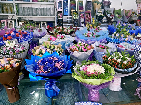 今天就是有著“中國情人節”之稱的七夕了。由于天氣炎熱,鮮花不易保存,所以此時往往是銷售淡季,但是無錫朝陽花卉市場的生意依舊火爆。 8月9日上午,我走訪了無錫朝陽花卉市場的多家花店,發現很多花店早已瞧準時機推出七夕促銷活動,有些商家還特別引進各種高檔玫瑰招攬人氣,其中就有一種新推出的玫瑰——彩虹玫瑰。