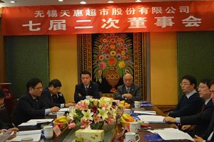 無錫天惠超市股份有限公司七屆二次董事會于2017年4月15日上午在集團公司三樓第二會議室舉行。會議審議并一致通過了《行政工作報告》、《財務工作報告》、《2015—2016年利潤預分配方案》、《關于對部份人員的崗位股權激勵進行調整的決定》。 會上,董事長張慶卿先生提出,今年天惠超市重點要練好內功,全面改善購物環境、店容店貌,提升服務,抓緊八大類商品,樹立天惠品牌。朝陽股份董事長張海良先生針對天惠超市當前面臨的問題,指出:1、在管理上,領導干部要以身作則,珍惜崗位,忠于職守,帶領好員工做好各方面工作。2、在抓好主業的同時,要有針對性抓薄弱環節,特別是豬肉,要實行店長負責制,都要學會動手操作。3、發展上,有所為有所不為,開關并行,敢于競爭,擴大市場份額。4、根據天惠實際情況,調整好員工收入結構,多勞多得,全面提升勞效。 其他與會董事也分別就2016年天惠超市工作中的成績給予了肯定,同時對存在的問題給予了中肯的批評和建議。相信在董事會的領導下,在天惠董事長的帶領下,天惠超市定會從實際出發,抓住生鮮主業、克服困難、齊心協力,完成2017年度各項任務。