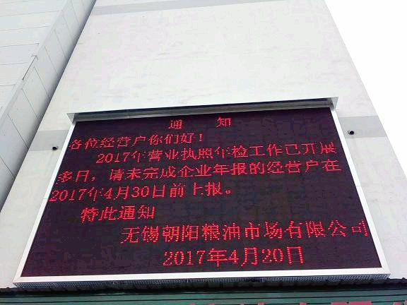 隨著朝陽農產品大市場發展步伐的加快,毗鄰糧油市場東面的地塊大多交接并拆遷,將進行新的建設。為提升市場形象,打響朝陽糧油的市場品牌,市場在錫澄路上新樹起了一塊廣告牌,上書“健康糧油綠色首選,副食天下食者無憂”。市場內部則新設一塊大型電子顯示屏,實時顯示市場動態信息、價格信息等數據。朝陽糧油市場將做好宣傳招商工作,吸引和歡迎更多客商到市場經銷,保障無錫市場糧油供應。