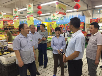 下午,北京順義區市場經營管理中心陳主任一行10余人來無錫朝陽農貿市場參觀交流,朝陽股份公司于書記和華艷進行了熱情的接待,就市場的價格管理、肉菜溯源、安全檢測、誠信經營等進行了詳細的介紹,在蔬菜區、肉類區、豆制品區、百貨區、天惠超市的參觀過程中,客人對市場的管理模式和管理效果大加贊賞,尤其是對個體經營戶和天惠超市經營相同的品類但不沖突的模式,紛紛表示太不可思議了! 陳主任表示:后續還會有三、四批農貿市場負責人來參觀交流,學習市場的寶貴經驗。