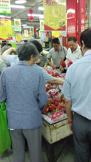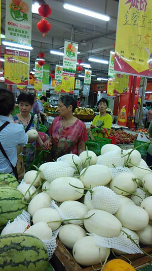 炎炎夏日,西甜瓜類商品無疑是廣大顧客的消費首選。天惠超市為滿足廣大顧客的需求,經與朝陽農產品的大市場對接,像麒麟、特小鳳西瓜和小白龍、西州蜜甜瓜等十余款不同品種的西甜瓜每日足量供應;并堅持薄利多銷,讓利給廣大消費者。特別是近日組織的小白龍甜瓜,不僅口感清脆香甜,價格上更是勁爆特惠僅需2.0元/斤,受到了廣大顧客的熱烈歡迎,單品日均銷售量達到5噸以上。 2017年以來,天惠超市針對水果供應做出了積極的調整。在季節性大品種上做到量足價低的同時,更進一步增加了如櫻桃、黃油桃各類花色水果品種以及像榴蓮、火龍果、山竹、藍莓等一些年輕人喜愛的進口水果供應。不但滿足和豐富了不同顧客群體的消費需求和選擇空間,并在定價上沒有因為小眾品種和進口水果的身份提高毛利空間,仍舊以平價親民的價格供應給廣大消費者。