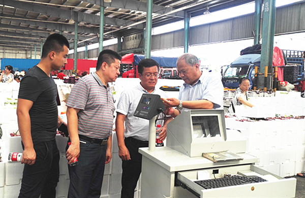安徽中合民生農(nóng)產(chǎn)品市場建設(shè)有限公司是廣東省農(nóng)墾集團(tuán)公司旗下廣墾辰禧國際農(nóng)產(chǎn)品物流投資有限公司在安徽省滁州市注冊成立的項(xiàng)目公司,涵蓋蔬菜水果生鮮、干貨糧油凍品等品類經(jīng)營。來訪客人先后參觀了信息中心、檢測中心和結(jié)算中心,并深入水果、蔬菜經(jīng)營區(qū),詳細(xì)了解了大市場的經(jīng)營管理、建設(shè)發(fā)展情況,尤其是在電子交易結(jié)算以及溯源體系建設(shè)等方面的先進(jìn)經(jīng)驗(yàn)和做法,希望通過互動(dòng)交流,加強(qiáng)行業(yè)間的友好合作。