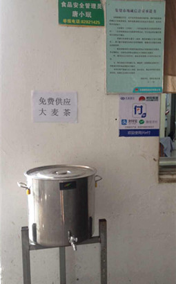 在服務臺,市場專門設置了茶桶,為消費者和經營戶免費提供消暑的大麥茶水。