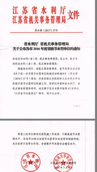 無錫朝陽農貿市場經過申報和江蘇省水利廳、省機關事務管理局的考評,被江蘇省水利廳授予無錫朝陽農貿市場“江蘇省節水型單位”的榮譽稱號。