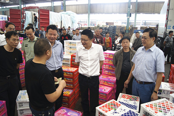 節日前的朝陽農產品大市場商品云集、人頭攢動、車水馬龍,一派交易繁忙的景象。秦區長一行先后來到水果市場各經營大棚,現場查看了節日商品的備貨情況,并與部分水果客商親切交談,詢問了商品的產地、行情等情況,隨后又來到結算中心、檢測中心、信息中心,詳細了解了食品安全溯源、農殘檢測與超標處理等相關情況,秦區長對朝陽農產品大市場在節日期間的保供穩價保安全工作表示肯定。