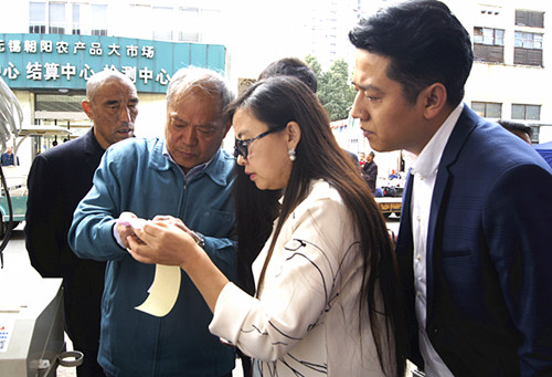 11月12日,中國供銷農產品批發市場控股有限公司、中農批協鑫綠色農業投資控股有限公司董事長助理歐陽易一行四人,到無錫朝陽農產品大市場考察交流。朝陽股份公司黨總支書記于堅忠熱情接待了來訪客人。 于書記陪同客人參觀考察了信息中心、檢測中心、結算中心,以及蔬菜、水果兩大市場,向客人全面介紹了大市場的發展建設情況、電子化交易結算系統、溯源體系建設及食品安全工作等。雙方還深入探討了“基地+市場+連鎖超市+連鎖農貿市場+安全放心”的朝陽模式,希望加強今后的合作交流。(呂雪芳 報道)
