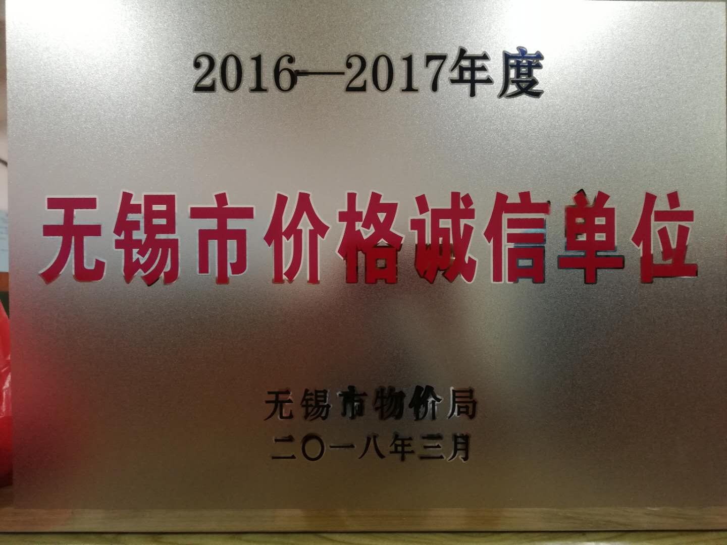 年度無錫市價格誠信單位”,受到了表彰。