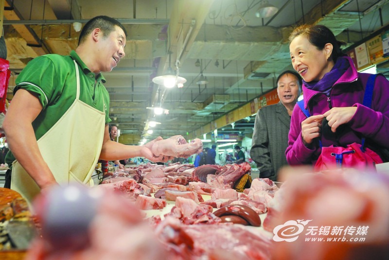 11月6日,市民在朝陽農貿市場購買豬肉。受供貨充足等多方面原因影響,近期我市豬肉價格“跌跌不休”,白條肉批發價從國慶節的每斤8.2元左右降到現在的7.1元-7.2元。“草排、大排、去皮腿心、腿心肉糜價格也相應下降。”市場相關人士介紹。此次全線降價后的豬肉價格跟10年前基本持平,降價后銷量猛增,比平日翻番。 (張立偉 攝)