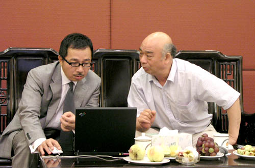 在朝陽(yáng)農(nóng)產(chǎn)品大市場(chǎng),朝陽(yáng)集團(tuán)董事長(zhǎng)、總經(jīng)理張海良先生向林則宇先生介紹了朝陽(yáng)集團(tuán)在農(nóng)產(chǎn)品大市場(chǎng)建設(shè)方面所取得的進(jìn)展,并展示了近期市場(chǎng)發(fā)展規(guī)劃。林先生也向朝陽(yáng)集團(tuán)領(lǐng)導(dǎo)介紹了臺(tái)灣省農(nóng)產(chǎn)品流通、交易等方面的做法,雙方在有關(guān)農(nóng)產(chǎn)品流通領(lǐng)域的運(yùn)作取得了共識(shí),并就進(jìn)一步合作事宜進(jìn)行了洽談。 |