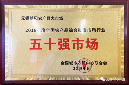 無錫朝陽農產品大市場榮登全國農產品綜合批發五十強市場榜單