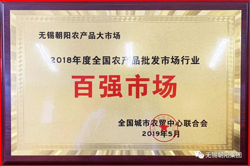 5月23日,由全國城市農貿中心聯合會主辦的“2019年中國農產品批發市場行業年會”在湖北武漢召開。會上,無錫朝陽農產品大市場榮獲“2018年度全國農產品綜合批發市場行業五十強市場”、“2018年度全國農產品批發市場行業百強市場“稱號。