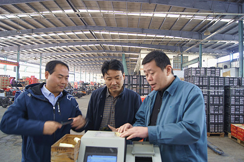在尤主席的陪同下,來訪客人先后參觀了信息中心、結(jié)算中心、檢測中心、蔬菜、水果兩大市場、冷庫、北二庫及糧油市場。尤主席向來訪客人介紹了市場的經(jīng)營管理和建設(shè)發(fā)展情況,尤其是在電子化交易結(jié)算、溯源體系建設(shè)等方面所作的舉措,得到了來訪客人的高度贊譽(yù)。