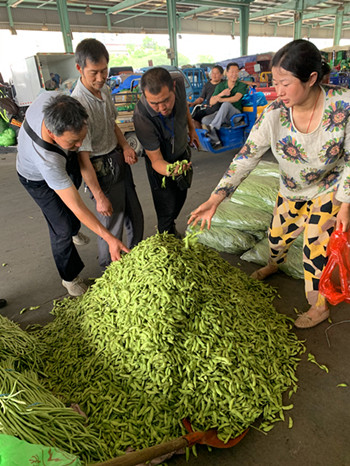 眼下,又到了毛豆集中大量上市的時候,朝陽農(nóng)產(chǎn)品大市場內的毛豆絕大多數(shù)飽滿、顆粒大,外形喜人。毛茸茸的豆莢,成堆成堆地形成一片片的嫩綠,等待著被顧客挑選?!敖衲甑拿购茫诟斜容^糯,食客反映都不錯,銷量也很好!”市場里的一位資深客商豎起大拇指夸獎說,“我們的客戶很多,隨著疫情的好轉,需求也逐漸增多”。  毛豆的種植地區(qū)廣,上市時間長,一般從農(nóng)歷二月前后上市,直到吃了中秋月餅和芋艿后才會真正落市。今年毛豆的上市時間和往年差不多,但是入夏以來,隨著安徽、江浙等地產(chǎn)量的提升,價格也從年初的新貴回落到了現(xiàn)在的約11.3元/公斤,比去年同期便宜約1.2元/公斤,目前日均銷量保持在20噸左右。蔬菜市場的一位負責人說,“今年毛豆長勢良好,如不出意外,今年毛豆產(chǎn)量會比往年略多,現(xiàn)在正是毛豆大量上市時節(jié)!”(馮方園) |