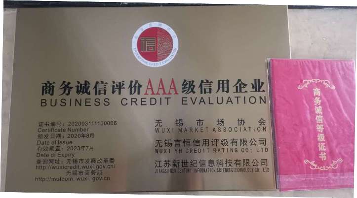 無錫朝陽糧油市場有限公司被評為商務誠信評價AAA級信用企業