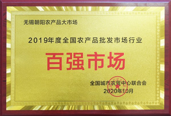近日,無錫朝陽農(nóng)產(chǎn)品大市場被全國城市農(nóng)貿(mào)中心聯(lián)合會評為“2019年度全國農(nóng)產(chǎn)品批發(fā)市場行業(yè)百強市場”。