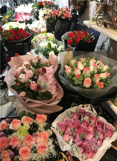 鮮花的價錢也比往年貴了很多,年前的玫瑰花更是貴得離譜,批發就要65元,在情人節前夕都已一搶而光,粉百合和粉康乃馨更是一束難求。(陳耀良)