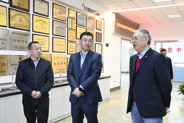 來訪一行先后來到朝陽陳列館、信息中心,檢測中心、結算中心,蔬菜、水果兩大市場、冷庫、北二庫及糧油市場,較全面地了解了朝陽企業的發展歷程、運營情況,以及朝陽農產品大市場在保障民生、平抑物價、確保安全等方面所作的具體工作。同時楊總還向來訪領導詳細介紹了市場的全程電子化交易模式、食品安全檢測、溯源體系、信息化數據平臺、智慧農批市場建設等方面的情況。 雙方就加強互通合作進行了友好交流。