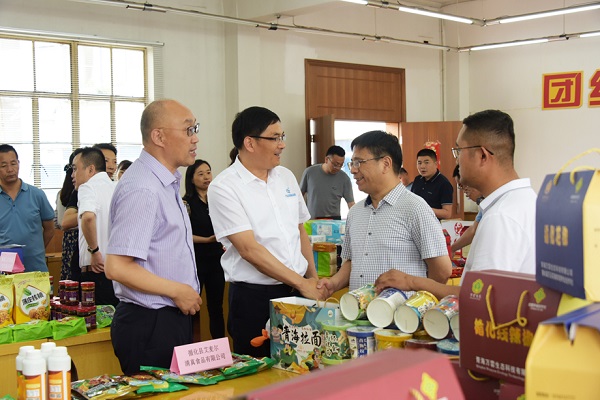 為推進(jìn)梁溪區(qū)和循化縣兩地對(duì)口支援工作,6月16日下午,梁溪區(qū)人大常委會(huì)副主任、區(qū)工商業(yè)聯(lián)合會(huì)主席、循化縣人民政府副縣長姚凱,循化縣副縣長韓偉率東西部扶貧協(xié)作領(lǐng)導(dǎo)小組成員及循化當(dāng)?shù)仄髽I(yè)代表,赴朝陽集團(tuán)組織召開對(duì)口支援工作交流會(huì),區(qū)發(fā)改委、區(qū)商務(wù)局、區(qū)機(jī)關(guān)事務(wù)管理局、區(qū)工商聯(lián)等有關(guān)部門負(fù)責(zé)人,以及包括朝陽集團(tuán)在內(nèi)的無錫10家企業(yè)代表參加了交流座談。集團(tuán)黨委書記、工會(huì)主席錢韌和集團(tuán)副總經(jīng)理張慶卿參加了會(huì)議。 在集團(tuán)三樓會(huì)議室,艾麥爾、天椒、伊嘉味、駝鈴等4家循化當(dāng)?shù)仄髽I(yè)將各自的主打特色產(chǎn)品進(jìn)行了布展和介紹推廣。雙方企業(yè)代表在現(xiàn)場進(jìn)行了接洽交流,區(qū)相關(guān)部門圍繞企業(yè)對(duì)接、市場拓展、運(yùn)營模式等方面進(jìn)行了交流,共同為促進(jìn)消費(fèi)扶貧出謀劃策。