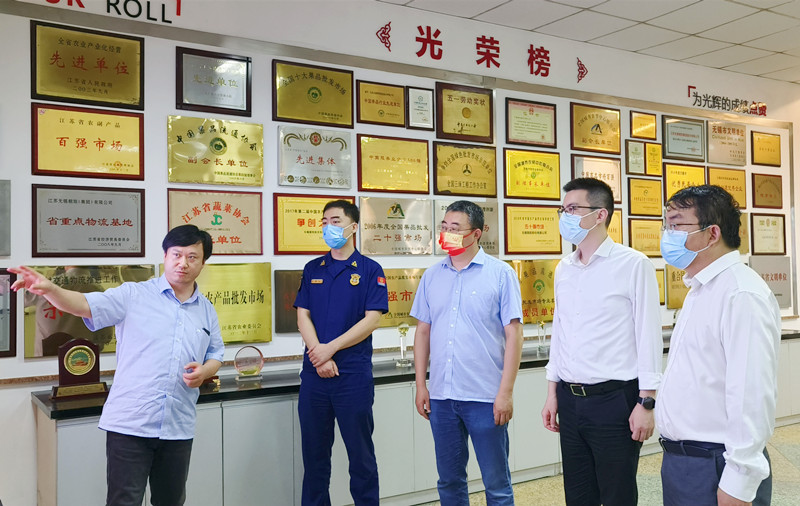 10月1日上午,梁溪區副區長辛樂帶領區商務局相關負責人、區城管、應急局、衛生健康委、市監、公安、消防救援大隊等部門分管負責人到朝陽農產品大市場開展疫情防控、安全生產和節日保供檢查。朝陽股份總經理朱健祥熱情接待了檢查組領導。