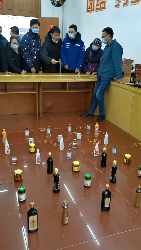 撲克比賽既有摜蛋高手,也有新人練手,既需要牌技,也需要運氣。捉對比拼下,最終冠亞軍在朝陽股份兩組選手之間角逐,最后呂雪芳/屠義組合戰勝了沈浩/徐洪林組合,獲得了第一名。 三樓的綜合游藝處早已是熙熙攘攘,人頭攢動。特別是在套模模、蒙眼鏟錢等區域,圍觀群眾已是里三層外三層。參加游戲的帶點小緊張,在旁觀看的則加油鼓勁,大家還互相切磋技巧,在游戲中放松了身心,喜笑樂開懷。