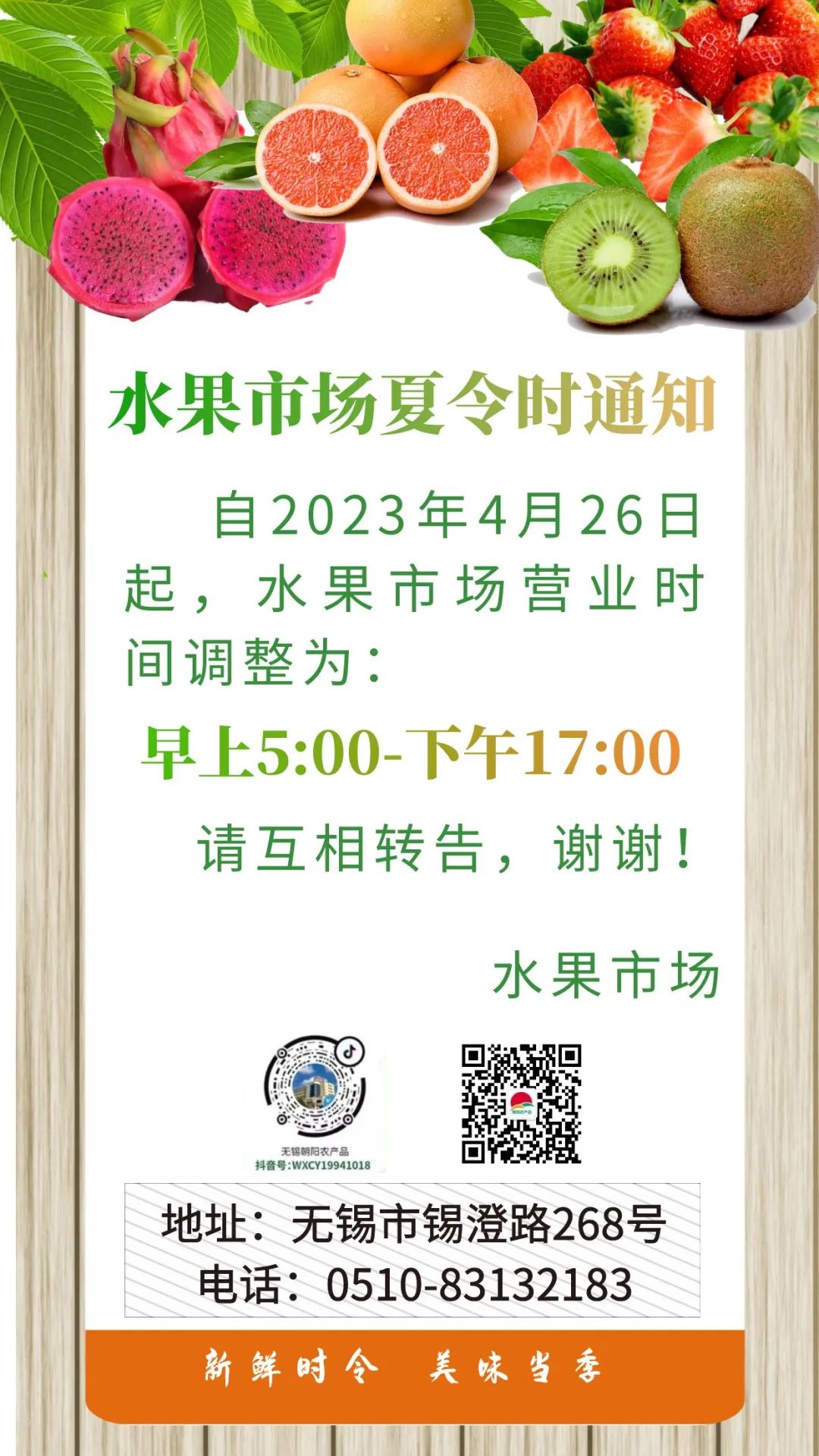 朝陽股份水果市場營業(yè)時間調(diào)整通知