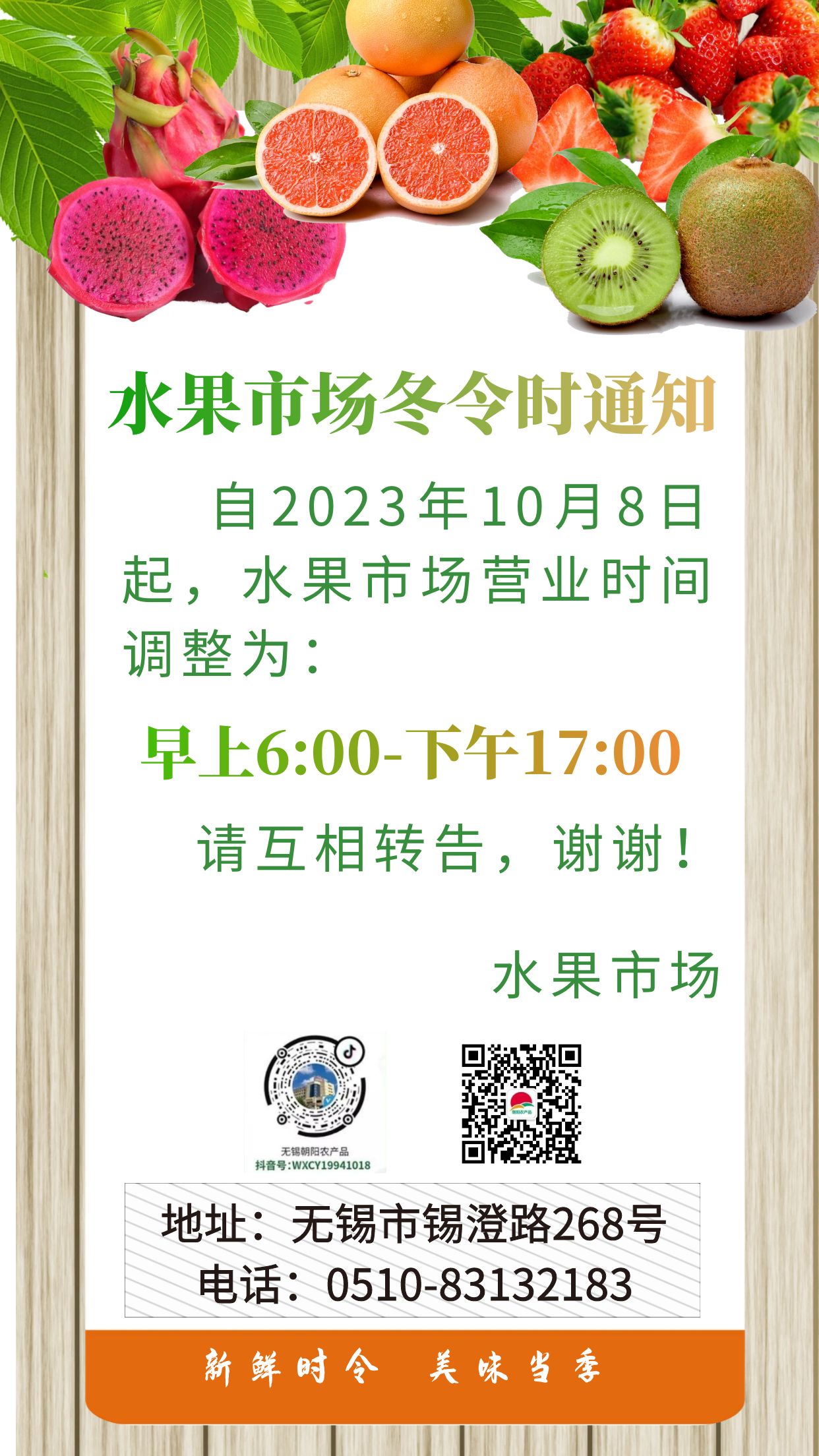 朝陽股份水果市場營業(yè)時(shí)間調(diào)整通知