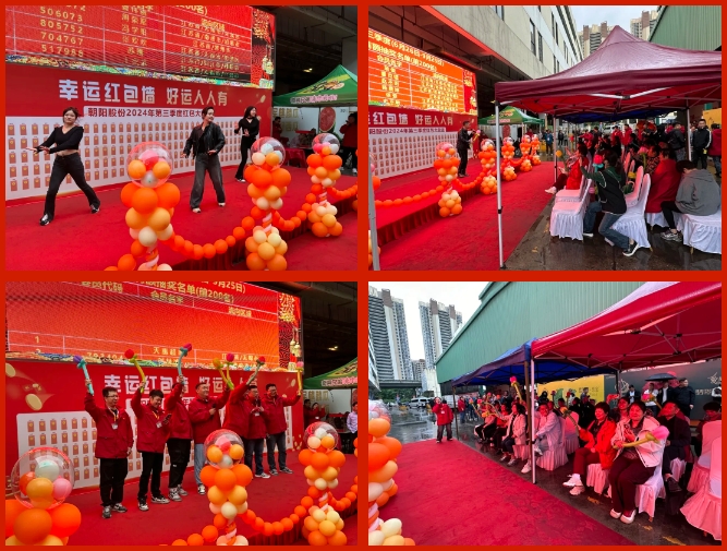 10月7日,朝陽股份隆重舉行2024年第三季度紅包大放送活動,雖秋雨綿綿,但絲毫未減會員們參與的熱情,活動開始前大家就滿心期待地聚集在臺下,歡聲笑語中洋溢著對幸運降臨的憧憬,秋雨帶來的涼意仿佛也被這份熱情所融化。