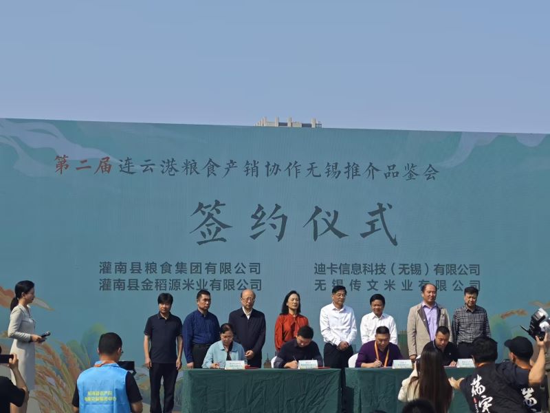 10月11日,第二屆連云港糧食產銷協作無錫推介品鑒會在無錫朝陽糧油市場成功舉辦。此次推介品鑒會由連云港市糧食和物資儲備局、無錫市糧食和物資儲備局共同主辦,東海縣、灌云縣、灌南縣發改委承辦。江蘇省糧食和物資儲備局相關處室、省糧食行業協會、無錫和連云港兩地市縣糧食和物資儲備部門與會。此次活動旨在向無錫各界展示連云港農產品的獨特魅力和卓越品質,吸引了糧食企業代表、媒體人士和眾多無錫市民的參與。 活動現場布置精美,充滿了連云港特色農產品的元素,營造出濃厚的推介品鑒氛圍。江蘇省糧食和物資儲備局二級巡視員孫燕、無錫是糧食和物資儲備局副局長王元、連云港市糧食和物資儲備局副局長許彬山先后致辭,指出無錫、連云港兩地南北相望、心手相連,自結對以來,兩地糧食部門迅速行動,深化合作交流,凝聚共建合力,全力推動糧食產銷和應急保供合作,促進省內糧源合理流動銜接,實現產區銷區優勢互補,達到了合作共贏的目的。 在推介品鑒會上,東海縣、灌云縣、灌南縣以宣傳片的形式介紹了優質糧食資源優勢,以及近年來在糧食產業發展方面所取得的成果。著重對“道穗香”、“東喜”、“平珠”、“秀收”等大米品牌和湯溝酒、“花果山”牌鳳鵝、“花果山”牌陳皮燒雞、葛六粉絲等特色、優質農產品作了推介。 無錫和連云港兩地還就如何進一步深化合作,加強南北糧食產業交流與互動進行了深入探討和交流,現場簽訂了6個糧食產銷合作協議。其中,無錫朝陽糧油市場經銷商無錫歲穗弘糧油貿易有限公司、無錫傳文米業有限公司分別與連云港景盛米業有限公司、灌南縣金稻源米業有限公司簽訂了糧食產銷合作協議。當天,參會嘉賓還現場品鑒了連云港特色農產品。
