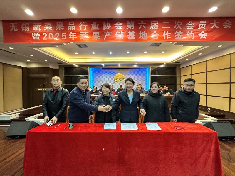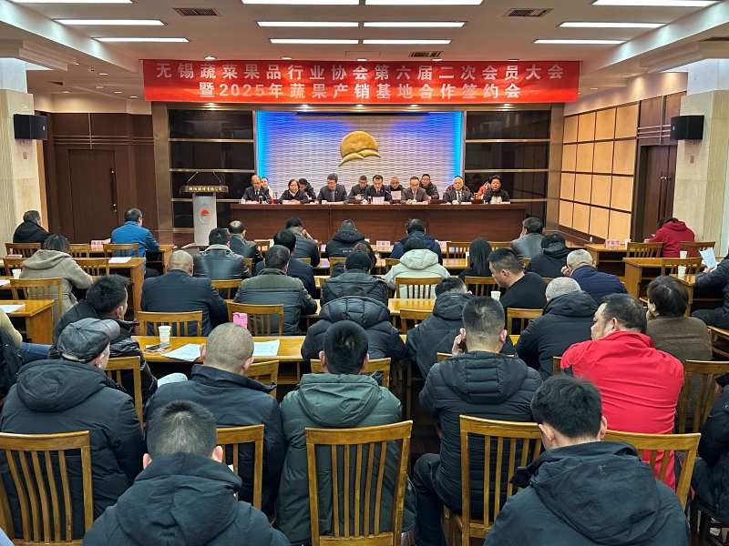 12月10日上午,無錫蔬菜果品行業協會六屆二次會員大會暨2025年蔬果產銷基地合作簽約會在朝陽農產品大市場召開。無錫蔬菜果品行業協會會員、全國及無錫蔬果生產基地代表、蔬果行業各單位、各部門有關人員共151人參會,無錫市工商聯副主席蔣誼春出席會議,無錫日報、江南晚報、無錫廣播電視臺等主流媒體記者到會采訪。 無錫蔬菜果品行業協會會長、無錫朝陽集團董事長張慶卿對協會2024年工作進行了總結,并對2025年主要工作要點作了報告,號召全體會員認真執行黨和國家的方針政策,推動產銷對接,打造知名品牌,努力為無錫蔬菜果品行業的繁榮和發展做出更大的貢獻。