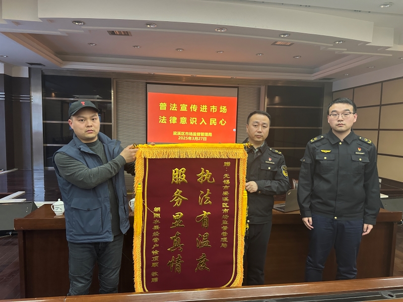 為感謝一直以來梁溪區市場監督管理局對市場及廣大經營戶的支持關心,客商代表特制錦旗贈予區局,向區局全體工作人員表示最誠摯的敬意,也祝愿區局各項工作順利,再創佳績!