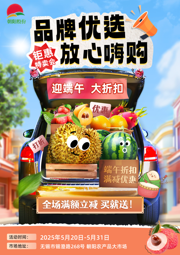親愛的會(huì)員朋友們,這個(gè)端午,讓朝陽(yáng)成為您尋找節(jié)日驚喜的起點(diǎn)!在這里,不僅有豐富的端午美食選擇,實(shí)惠的價(jià)格,更有滿滿的節(jié)日氛圍和貼心的服務(wù)。帶上家人,約上朋友,一起來(lái)朝陽(yáng)市場(chǎng),開啟一場(chǎng)屬于您的端午水果之旅,讓這個(gè)端午節(jié),因朝陽(yáng)市場(chǎng)而更加溫馨、美好!