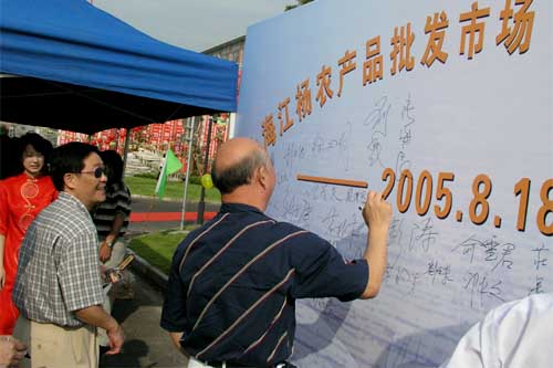 18日,上海江楊農產品批發市場正式開業,張海良董事長作為嘉賓走上主席臺祝賀。江楊新市場的規模和管理模式,將為建設中的朝陽農產品大市場提供值得借鑒的經驗。