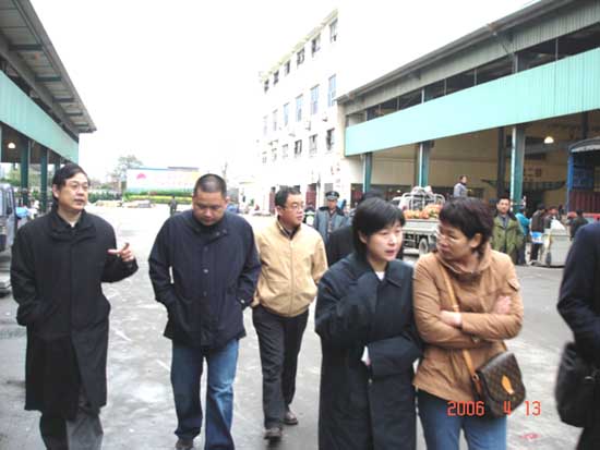 4月13日,廣州江南果菜批發市場有限責任公司董事長、總經理葉燦江一行6人,來朝陽農產品大市場參觀考察。無錫朝陽集團公司總經理楊興德、朝陽股份公司副總經理湯建興熱情接待了來訪的廣州客人。